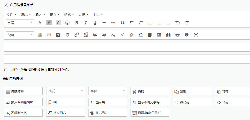 它能把文章编辑器切换成经典编辑器并且增加表格,插入视频等功能↓,建站必备。
