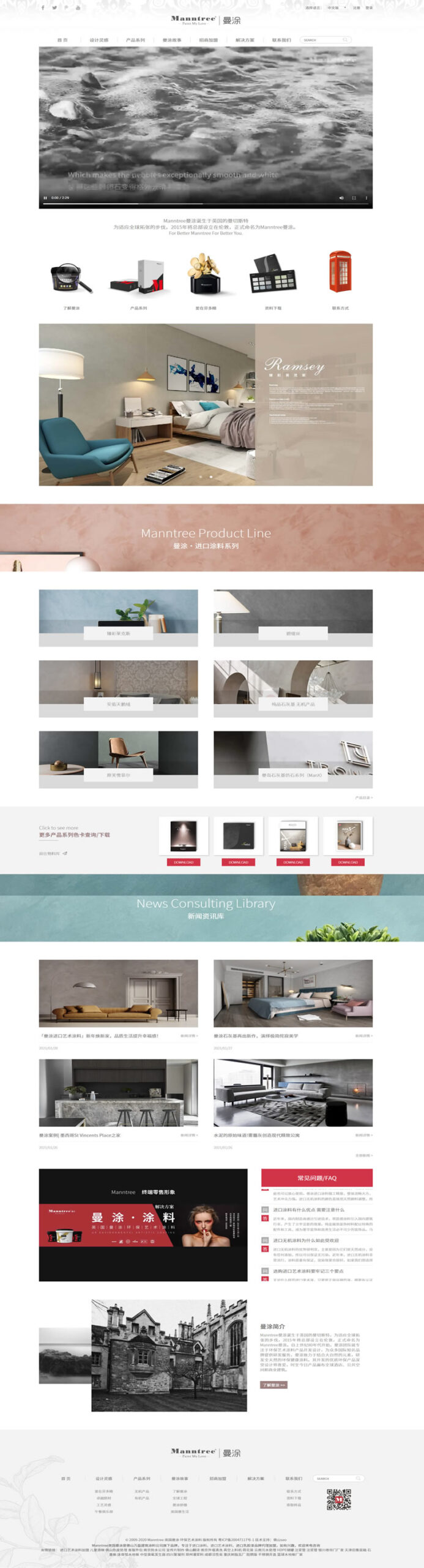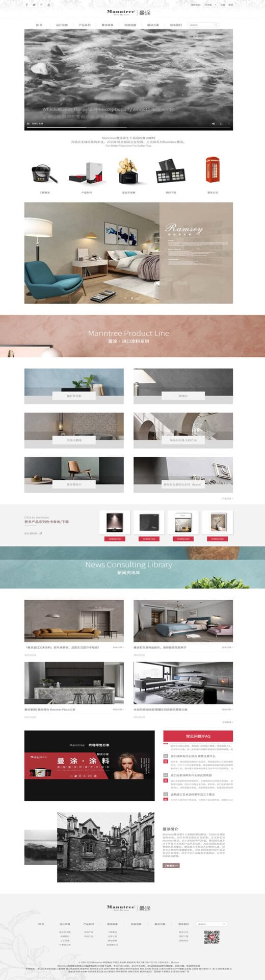 最终上线的网站成功强化了 Manntree 的品牌质感与市场定位,形成一个兼具展示功能与业务价值的高端涂料线上平台。网站不仅提升了消费者在选色、选材、了解风格搭配时的体验,也为设计师和合作伙伴提供了系统化的产品技术资料与应用案例,显著提高了咨询效率与合作意愿。借助更国际化的视觉表达与更清晰的内容架构,Manntree 的产品优势、环保理念与艺术价值得以更有效地传递,为品牌的线上推广、客户触达和渠道拓展提供稳定的数字化支撑。
