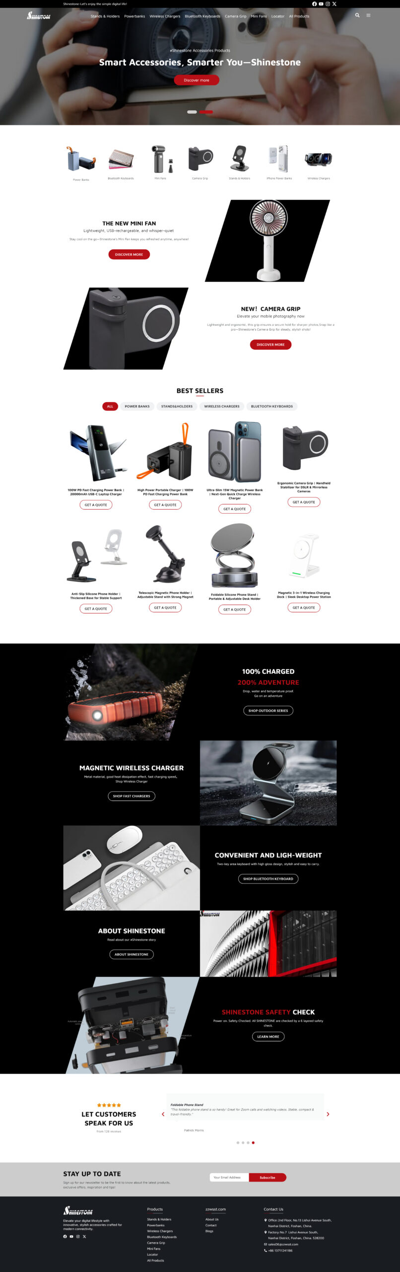 针对其电子配件贸易/出口业务的特点,我们为晟世通设计了一个兼具商务感 + 国际贸易气质的网站:清晰的导航结构囊括“产品展示 + 公司资质 &出口能力 + 联系/询盘入口 +关于我们”等模块,帮助访客快速找到产品信息或联系公司。同时,在视觉与配色上,采用简洁、干净的商务风格 — 使用白底 +浅灰 +深色边框,使内容干净利落易读,突出产品与公司实力。页面布局注重直观与简洁,让国内外客户无论通过电脑或移动设备访问,都能快速获取核心信息。我们还为其设置了清楚的“产品列表 → 详情页 → 联系/询盘”流程,方便买家迅速了解产品参数、公司资质与供应能力,并发起询盘。