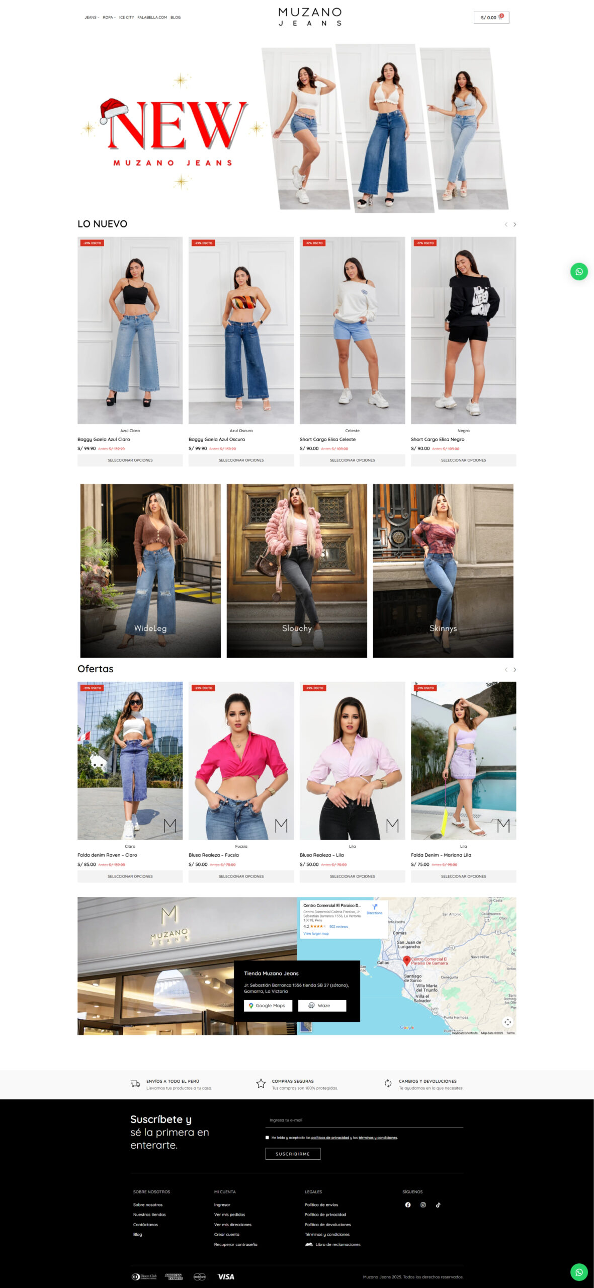 Muzano 是一家专注女士牛仔裤及时尚女装的电商品牌,主要面向秘鲁本地消费者(B2C 模式)。品牌以牛仔裤为核心产品,涵盖 Skinny Jeans、Mom Jeans、Shorts、裙装等多样化女装系列,致力于为年轻女性提供时尚、舒适、价格合理的日常穿搭选择。其核心客户群是追求潮流、喜爱网购、关注性价比的女性消费者,网站的主要目标是展示产品款式、价格及促销信息,并提供便捷的线上购物体验。