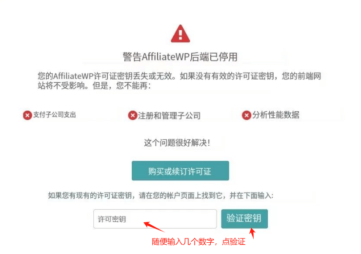 如果设置页面提示下图内容,随便输入0123456789,点“验证密匙”即可。