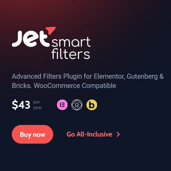 Jet Smart Filters是优秀Woocommerce产品筛选插件,可以帮助客户快速找到心仪产品,提高转化率。功能强大,自定义程度高,容易设置。