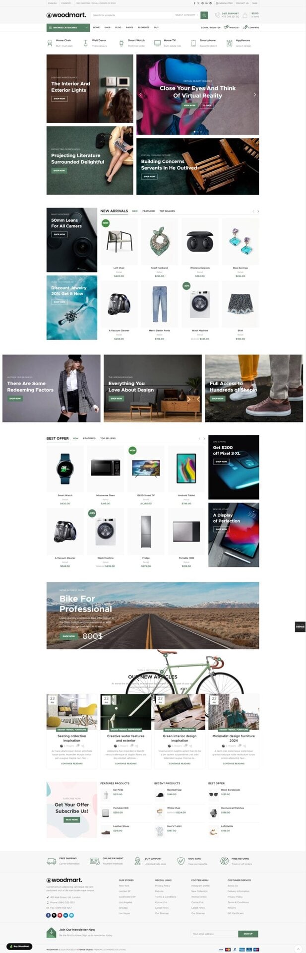 此外,Woodmart主题还提供了丰富的页面模板和元素样式,让您可以快速创建各类页面,如主页、产品展示页、联系我们等,节省您的时间和精力。