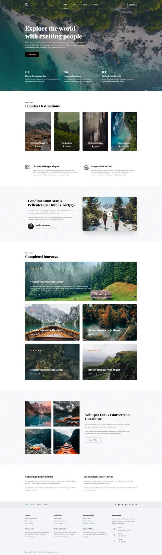 这个旅游网站非常适合那些想要记录旅程的人。主页的英雄设计令人惊叹,让访客立刻爱上你的网站。博客部分设置得很好,可以让你展示冒险中最美好的时刻,而关于页面则让你了解你的博客是如何诞生的。