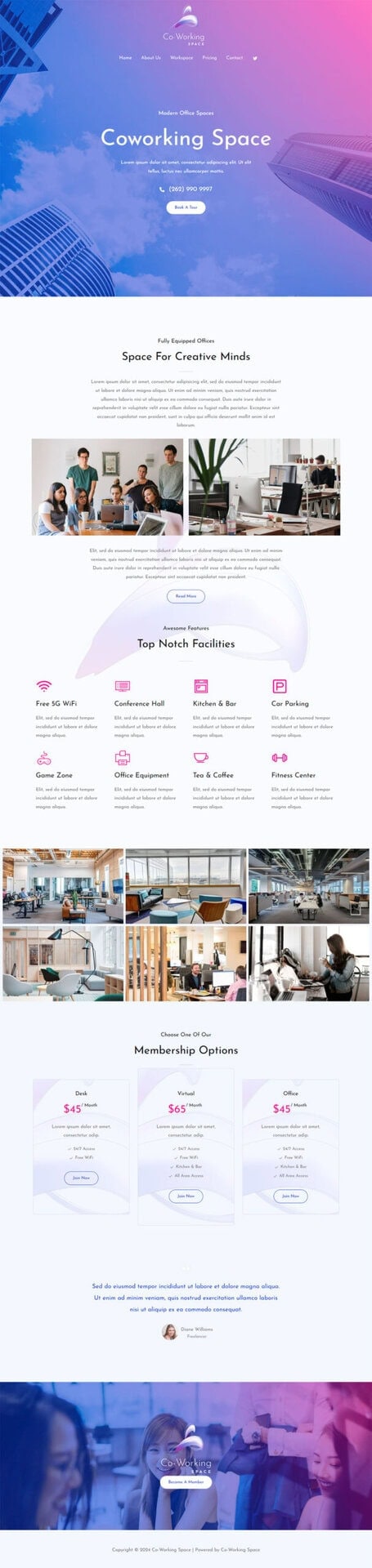 通过Astra主题,您可以轻松创建一个轻量级且高度可定制的网站。其丰富的设计选项和灵活性使您能够定制网站的外观和功能,以展示协同工作空间的独特魅力和专业形象。