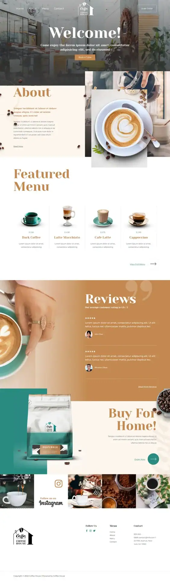 - 菜单展示: 确保您清晰展示您的咖啡馆菜单,包括各种咖啡、茶和小吃的详细描述和价格。