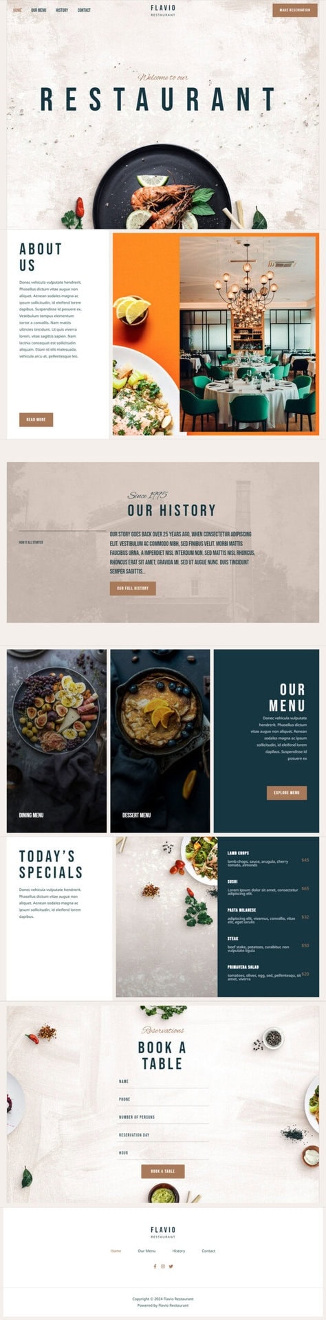设计Flavio Restaurant网站的关键在于打造一个引人注目且易于导航的在线平台,以展示餐厅的独特魅力和吸引力。通过精心设计的网站,客人可以在网站上轻松浏览菜单、了解餐厅的位置和氛围,从而产生预订意愿。