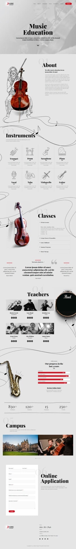 - 展示课程: 列出学校提供的各种音乐课程,包括钢琴、吉他、小提琴等,让访问者了解学校的丰富教学内容。