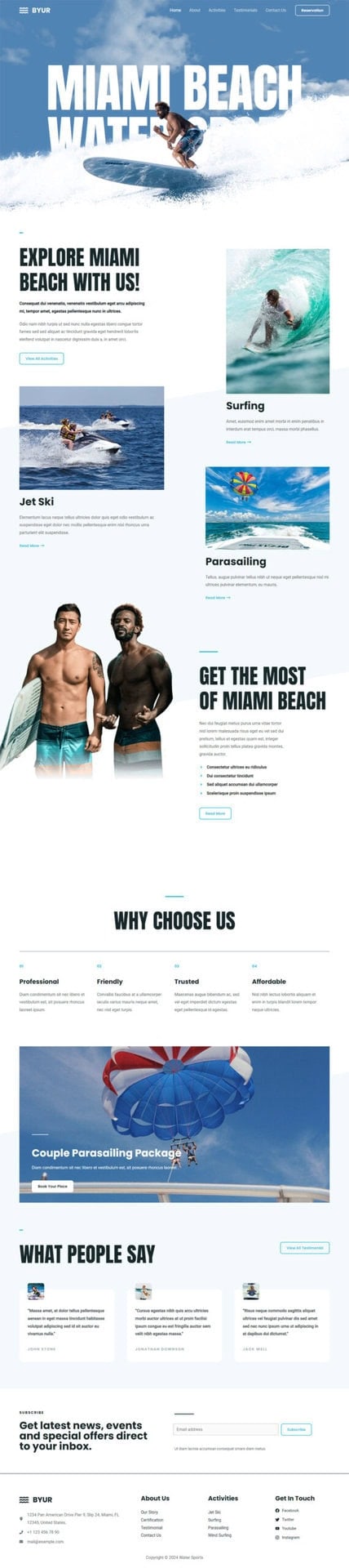 - 选择合适的配色方案: 水上运动行业通常与清新、活力和自然联系在一起,因此选择清爽的蓝色、绿色或白色调色板可以有效传达这种感觉。