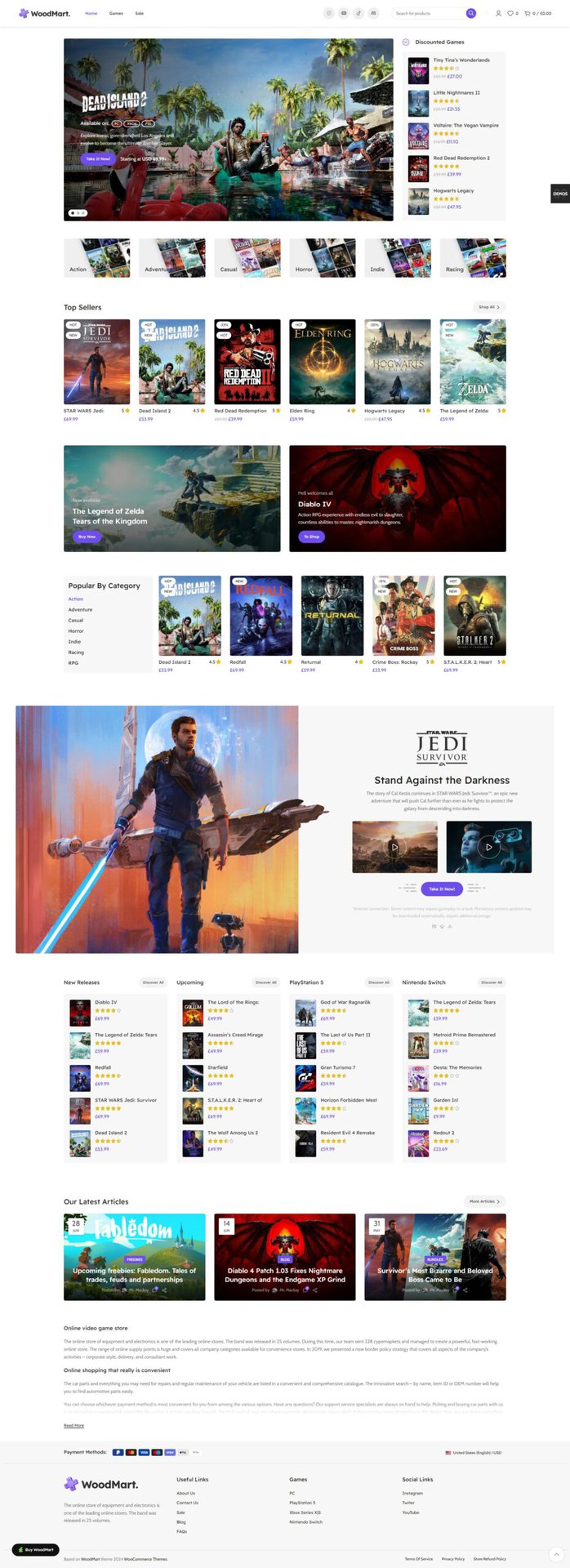 1. 简洁直观的网站设计: 确保您的网站设计简洁直观,让用户能够轻松浏览和购买游戏产品。使用Woodmart主题的自定义选项,优化网站布局和设计,使用户能够快速找到所需的游戏。
