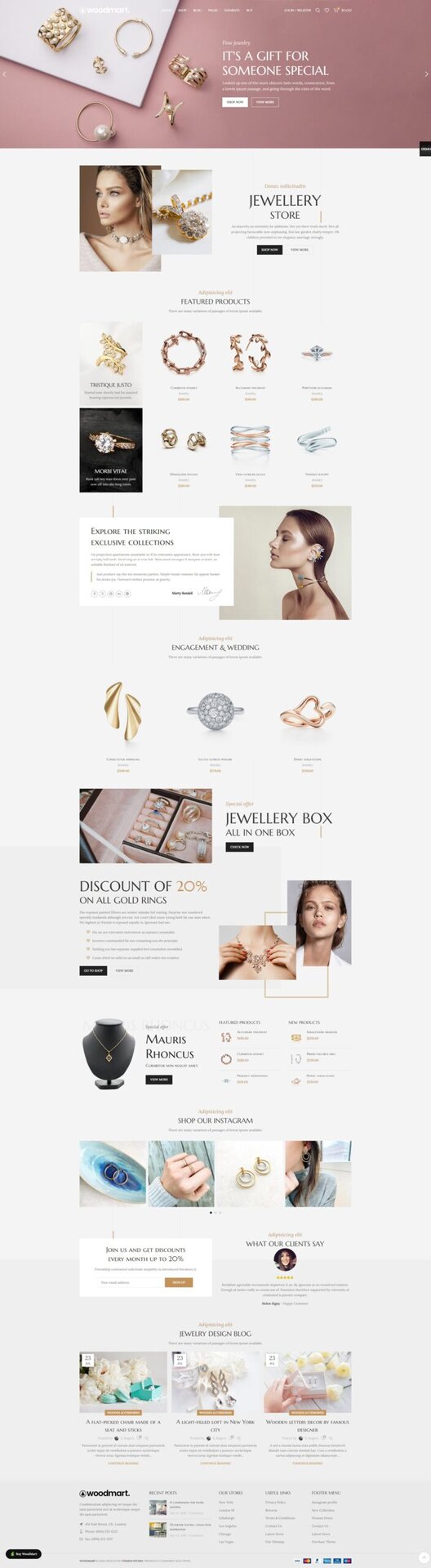 - 专业设计: Woodmart主题提供多种专业设计模板,可根据您的品牌形象和风格进行个性化调整,确保您的珠宝店铺与众不同。