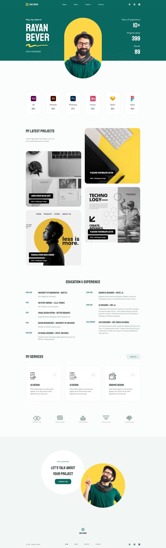 对于任何想要在万维网上开设自己的设计机构的人来说,Beverr 都是一个很好的起点。设计非常简约,包含重要的部分,可帮助将访客转化为客户。