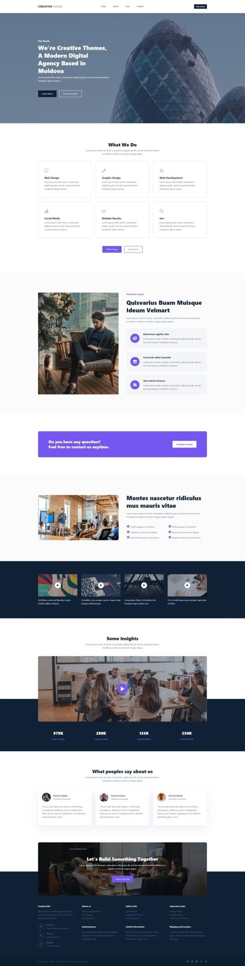 主页旨在快速吸引访客的注意力,顶部有醒目的号召性用语部分,简洁易懂的部分易于浏览和理解。关于页面可以详细介绍贵公司的价值观及其背后的团队。您还可以在博客中介绍客户可能感兴趣的各种主题,联系页面的设置让您可以快速联系。