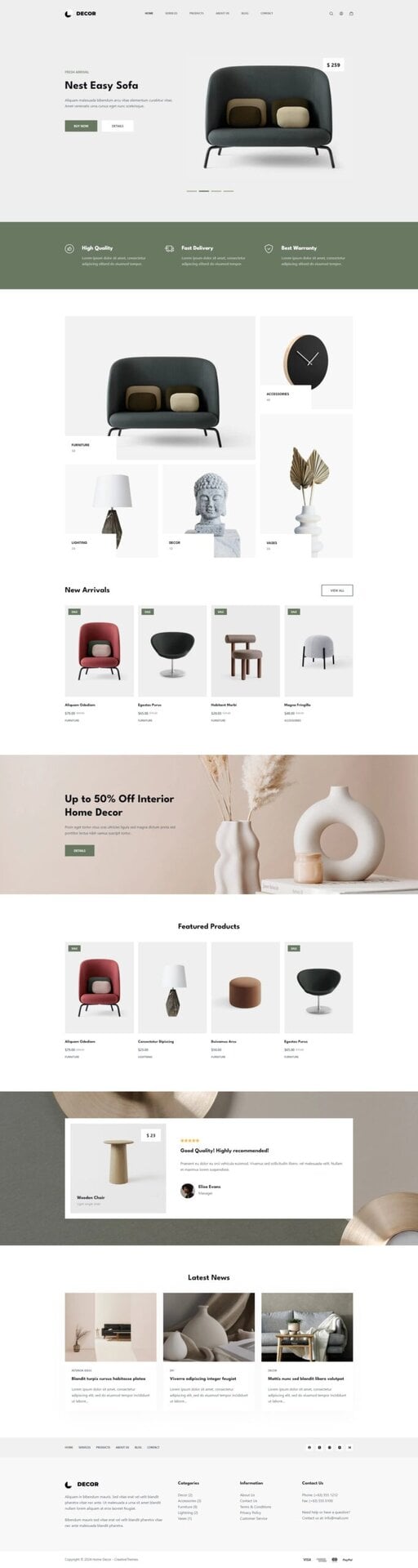 这个入门模板是我们最精美的设计之一。它是您开始室内设计领域的完美套件,因为它还包含电子商务网站的构建块。