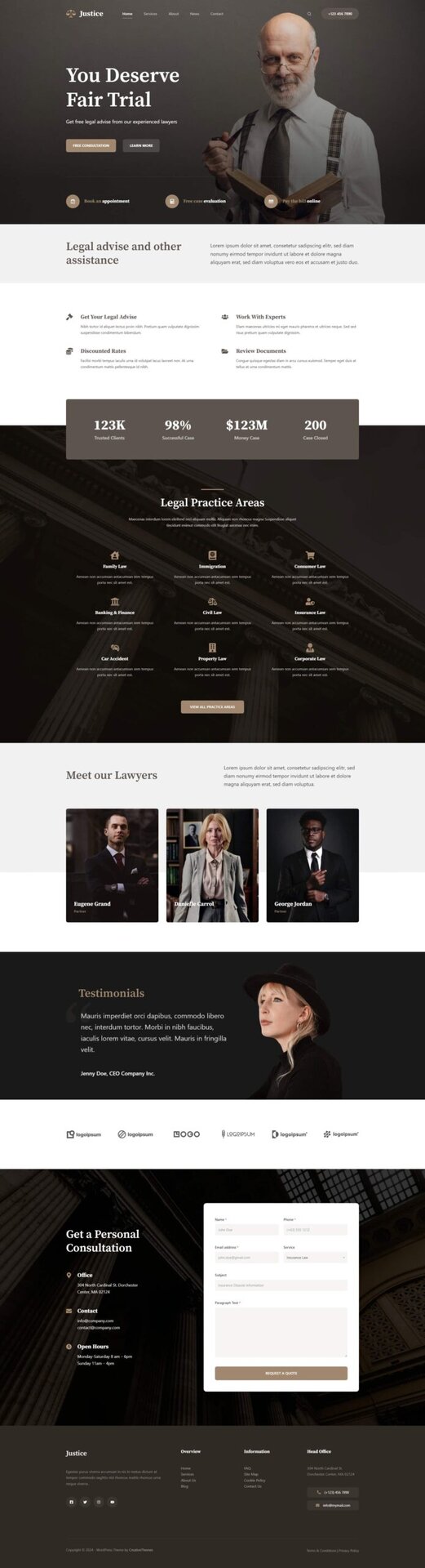 Justice 是一个入门网站,完美地展示了一家律师事务所。它专为帮助您快速入门而打造,并给每一位走进您家门(或在本例中为网站)的潜在客户留下深刻印象。
