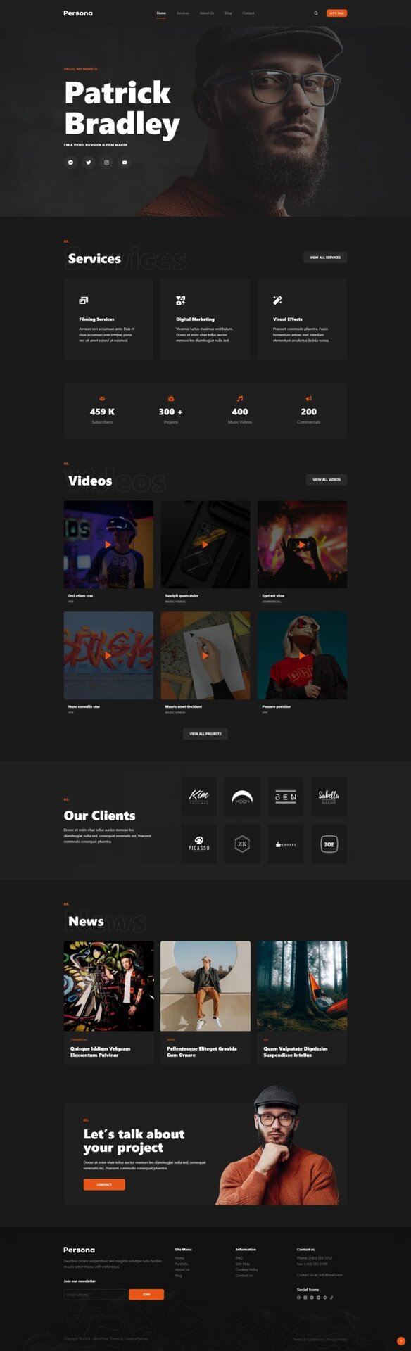 此入门包非常适合希望进入设计和领域的自由职业者。主页是您展示最新作品的绝佳展示,而服务页面可让用户快速预约您的精彩活动。