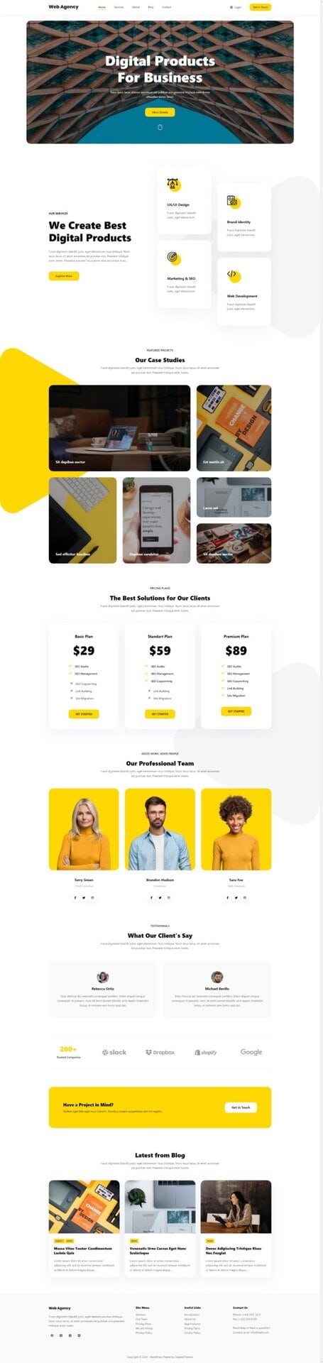 该模板采用简约设计,非常适合想要让客户惊叹的人们。它具备您可能需要的一切,包括精简的主页和精简的信息,服务页面展示了您的企业提供的解决方案,而关于和联系页面则让您的访问者知道如何与您联系。